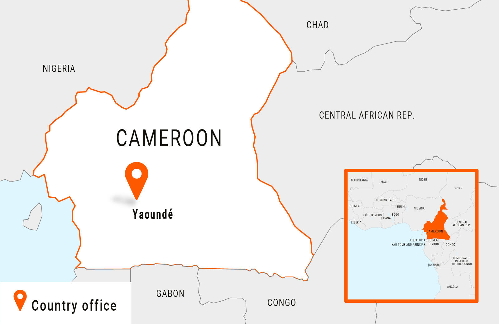 Areas of operation: Yaoundé (country office), Far North region, Southwest and Northwest regions, East region, Adamawa region, Littoral region, and West region