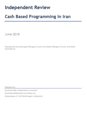 This document presents the results of the commissioned review. It discusses the extent to which the interventions have achieved set objectives, identifies exiting information gaps, and proposes ways to strengthen the cash-based programming and the related M&E to further improve the INGOs future efforts to support vulnerable Afghans in Iran.