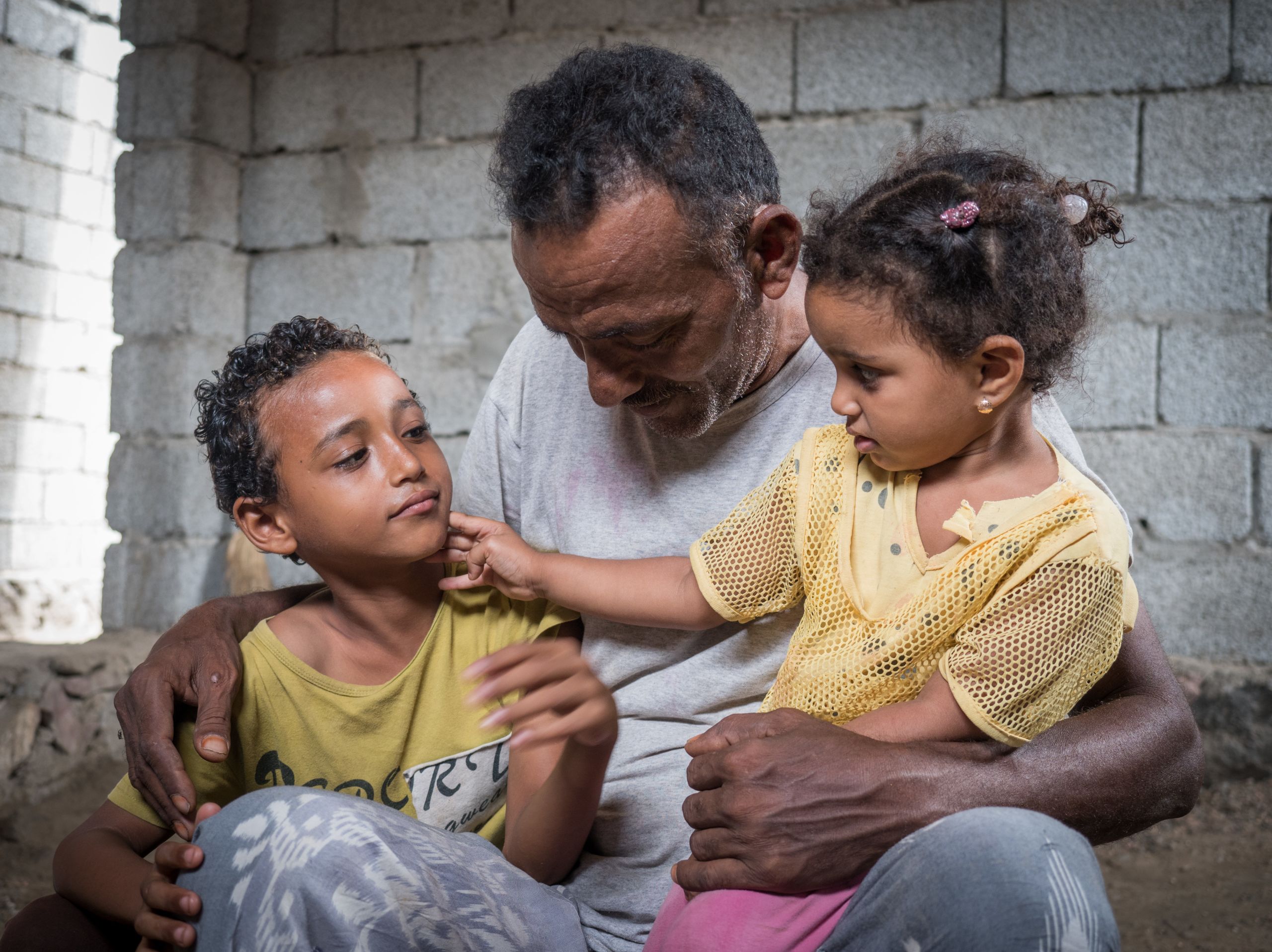 Suleiman the fisherman shares a tender moment with his son Ismail, 8, and granddaughter Retag, 3.