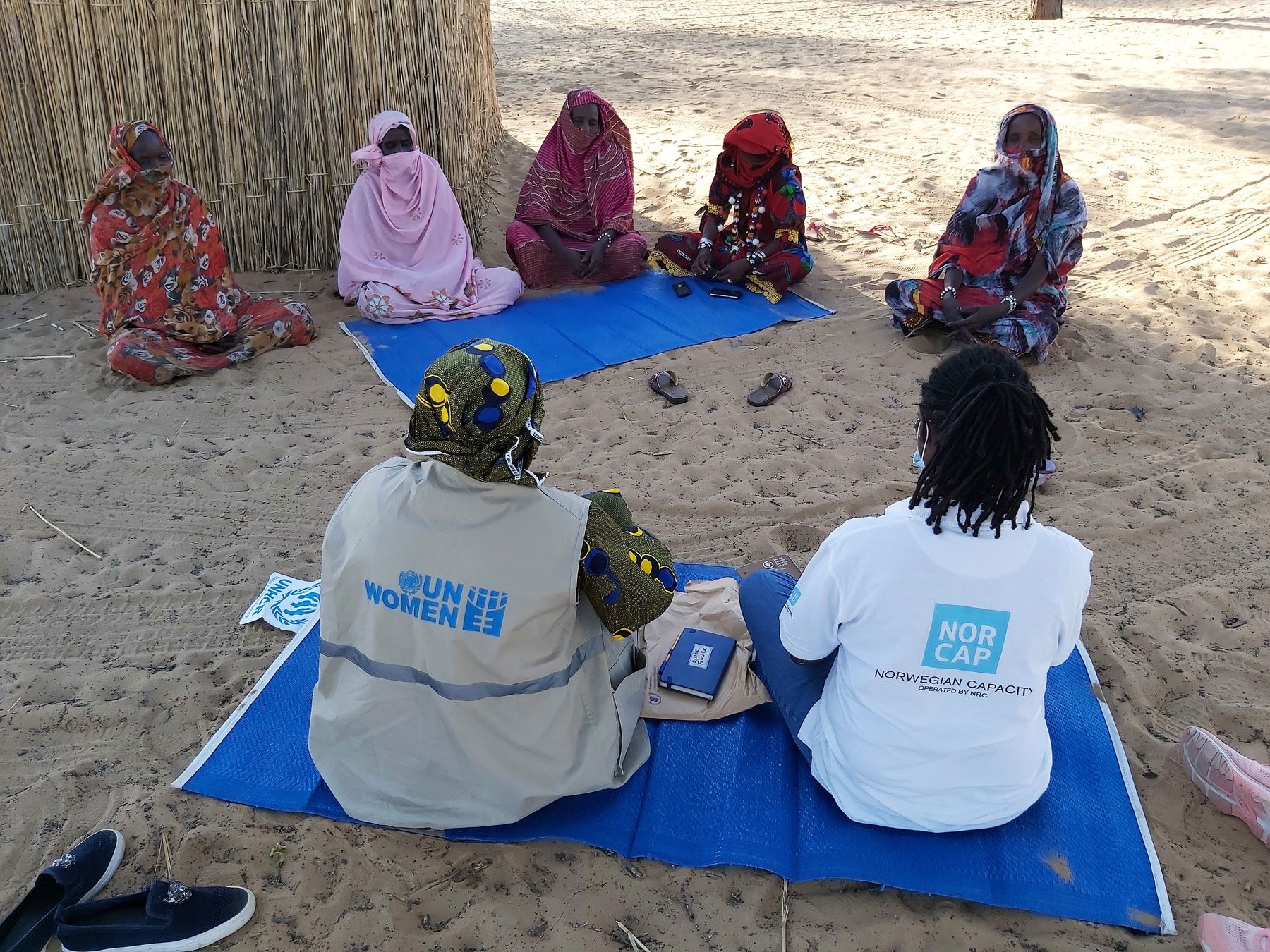 Senior Gender and Capacity Building Specialist, Diane Felicite Magnikeu Ngamo and her colleague from UN Women at a focus group discussion with leaders from a women’s group for internally displaced people in N'Goutou Koumbwa, Chad. (Photo: NORCAP)