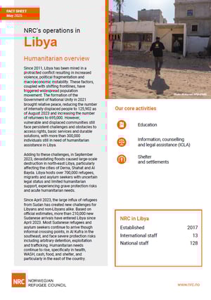 The Norwegian Refugee Council (NRC) began operations in Libya in 2017, expanding support to internally displaced people (IDPs), returnees, host communities, migrants, refugees and asylum seekers. In 2024, NRC assisted more than 119,000 individuals with education, legal assistance, shelter, cash and livelihoods services.
