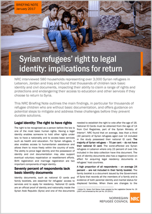 This NRC Briefing Note outlines the main findings, in particular for thousands of refugee children who are without basic documentation, and offers guidance on potential steps to mitigate and address these challenges before they prevent durable solutions.