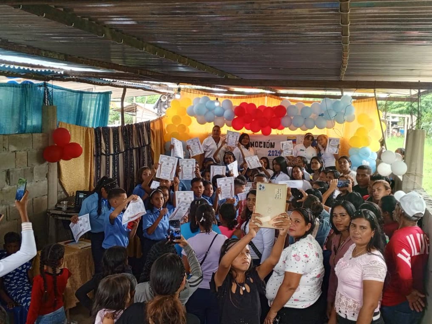 Sixth graders show their certificates on the day their community celebrated its first elementary school graduation. Photo: courtesy of the community